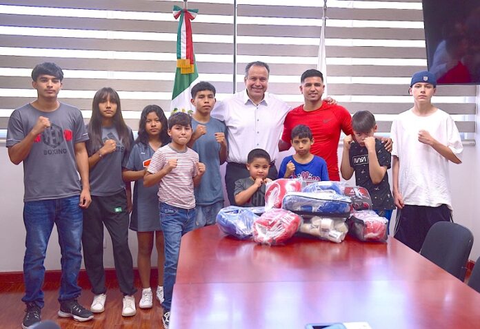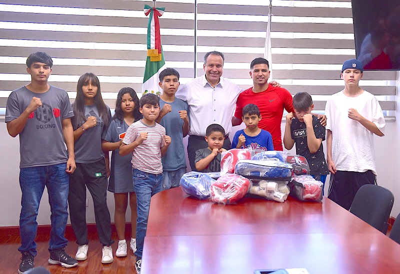 Boxeadoras y boxeadores del gimnasio HT Boxing, de la colonia Benito Juárez, recibieron de manos del Presidente Municipal Antonio Astiazarán Gutiérrez un costal de boxeo, manoplas, guantes, caretas y vendas, junto con un mensaje de agradecimiento por ser un orgullo para Hermosillo.