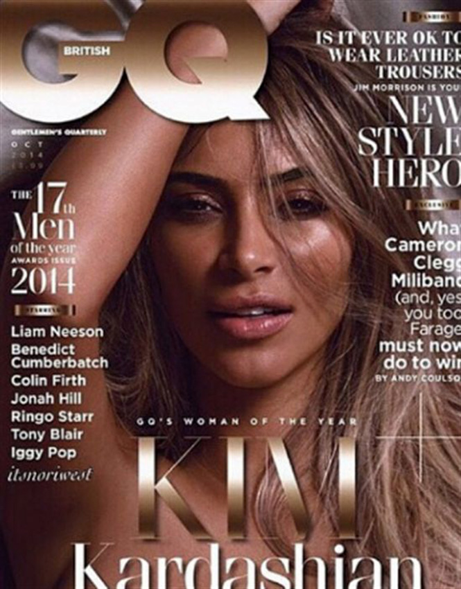 La esposa del rapero Kanye West posó desnuda en una cama con sábanas de seda, tras haber sido coronada como la Mujer del Año en la GQ Men anual.