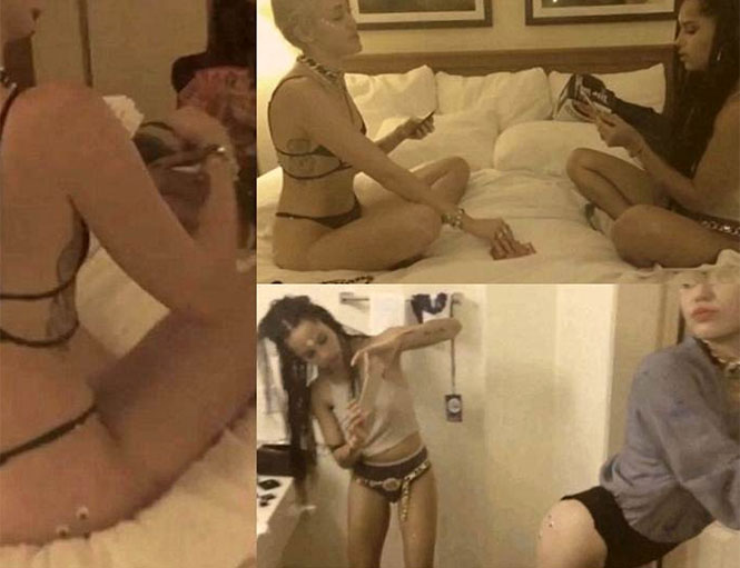 En ropa interior y entre botellas de champaña y armas de juguete, las dos veinteañeras, al parecer ya muy amigas, se pasean por una habitación de hotel en calzoncillos y juegan cartas en la cama mientras la cámara se centra en enfocar sus traseros casi al desnudo.