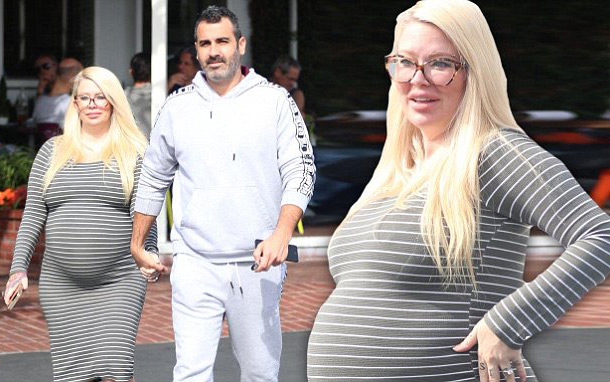 La estrella de películas para adultos de la década de los 90, ahora con 42 años de edad, exhibió su muy abultada figura (si se toma en cuenta que por recomendaciones médicas una embarazada debe subir solamente un kilo por mes hasta el nacimiento de su bebé), en las calles de California junto a su prometido, Lior Bitton.