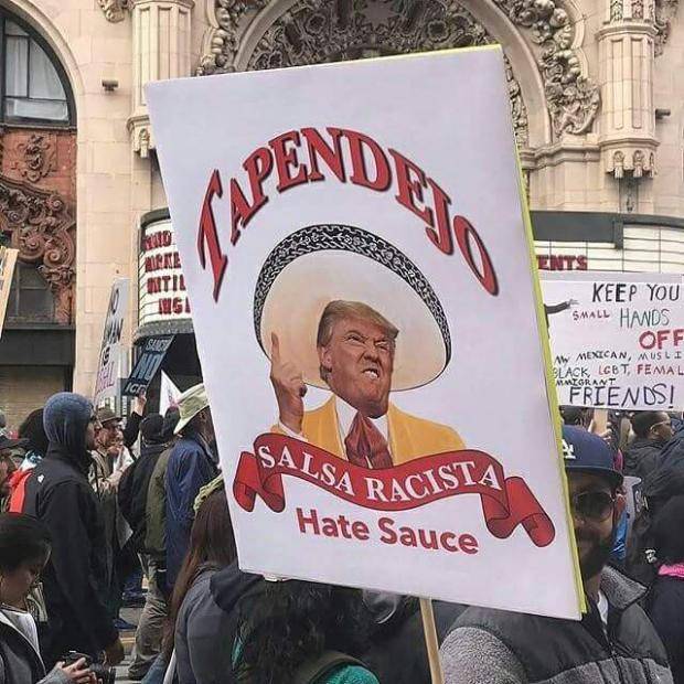 Las principales consignas lanzadas este lunes fueron «No es mi presidente», «No veto, no muro», «Veta el muro», y «Echar a Trump». De acuerdo con la agencia AP, en la ciudad de Portland, en Oregon, se registró un breve enfrentamiento entre inconformes y policía local, el único incidente de violencia durante la jornada.