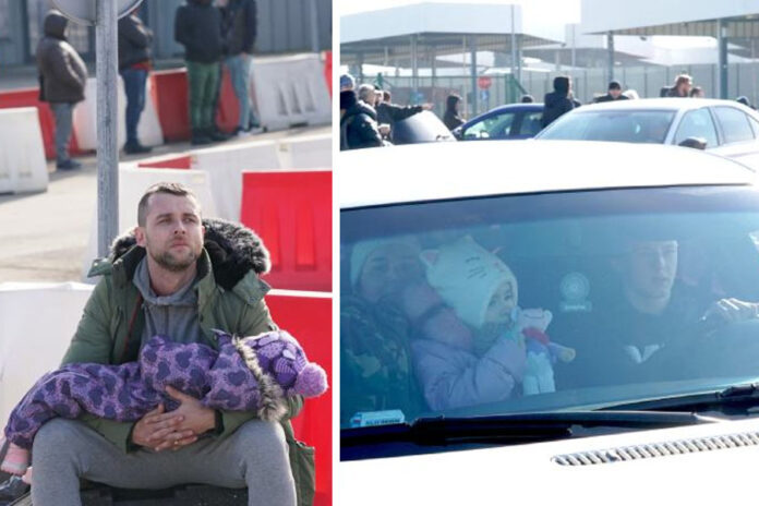 Mientras las fuerzas rusas bombardeaban las ciudades ucranianas, incluida la capital Kiev, con artillería y misiles de crucero, familias temerosas se agolpaban en las fronteras de la Unión Europea con la esperanza de entrar en Polonia, Eslovaquia, Rumania y Hungría.