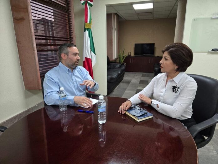 En gira por la capital, la alcaldesa Esmeralda González sostuvo encuentro con David Soto, secretario del Trabajo en el Gobierno del Estado.