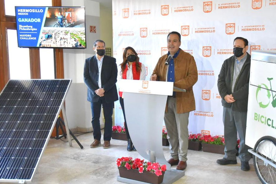 <div>Hermosillo, Sonora; enero 20 de 2022.- “Ni un municipio del País, salvo Hermosillo Sonora, otorga incentivos para poder instalar paneles solares en las viviendas”, afirmó el Presidente Antonio Astiazarán al anunciar el arranque de “Hogar Solar”, el programa con que se proyecta ayudar en una primera etapa a 100 familias a reducir su gasto en electricidad.</div><div><br></div><div>Acompañado por Carla Neudert Córdova, Directora de la Agencia Municipal de Energía y Cambio Climático, antes Alumbrado Público, y José Carrillo Atondo, Director de Implan, el munícipe ofreció una conferencia de prensa en la que compartió dos noticias muy importantes para la capital sonorense.</div><div><br></div><div>La primera conlleva el cumplimiento del compromiso de Antonio Astiazarán de convertir a Hermosillo de la llamada “Ciudad del Sol” a “La Ciudad Solar”, en este caso con el arranque de un esquema mediante el que el Gobierno Municipal, con un fondo inicial de 3 millones de pesos, aportará un 15 por ciento de la inversión inicial para la instalación de paneles solares en viviendas con altos consumos de energía eléctrica.</div><div><br></div><div>Se trata del proyecto “Hogar Solar”, cuyo objetivo es ayudar a familias de esta capital a mejorar su calidad de vida, de manera ecológica y sustentable, con la colocación de paneles solares que disminuyan el monto de sus recibos de CFE.</div><div><br></div><div>Claudia Neudert Córdova detalló esta iniciativa que a decir del Presidente Antonio Astiazarán coloca a Hermosillo como punta de lanza a nivel nacional. Conlleva acciones paralelas como aislamiento térmico; focos ahorradores; diagnósticos individualizados de consumos y eventuales fallas y propuestas de mejora, con apoyo de estudiantes de carreras compatibles con dichas funciones, a los que se denominará “Tumbawatts”.</div><div><br></div><div>“Siempre va a ser más barato ahorrar energía que generarla, por eso creo que es un programa emblemático que por un lado detecta áreas de oportunidad de ahorro de energía eléctrica en las viviendas y por otro brinda la mano amiga del Gobierno Municipal para generar su propia energía con el sol”, resumió Antonio Astiazarán.</div><div><br></div><div>Agradeció la voluntad de colaboración de la Comisión Federal de Electricidad en esta iniciativa que seguramente se convertirá en ejemplo nacional. “Yo me lo imagino, y les pido que todos lo hagamos, que cerremos los ojos, de repente los abrimos y vamos a ver el techo de todas las casas con paneles solares generando su propia electricidad”, expresó.</div><div><br></div><div>Los ciudadanos interesados en ser parte de este programa pueden inscribirse dando Click en el banner que ya está disponible en la página oficial del Ayuntamiento: hermosillo.gob.mx, donde deberán llenar los datos solicitados.</div><div><br></div><div><b>Comparten el éxito de la propuesta hermosillense “Biciclando” en el concurso internacional Global Mayors Challenge</b></div><div><br></div><div>En la misma conferencia de Prensa, el Presidente Municipal Antonio Astiazarán celebró que la estrategia “Biciclando” fuera la única ciudad mexicana seleccionada para obtener un financiamiento de un millón de dólares por parte de la agencia Bloomberg Philanthropies, para su ejecución durante los próximos 3 años.</div><div><br></div><div>“Nuevamente quiero felicitar al arquitecto Carrillo y a todo el equipo del IMPLAN por este logro tan importante para poner a nuestra ciudad en el mapa mundial en el tema de sustentabilidad, partiendo de la perspectiva de género como política pública”, externó.</div><div><br></div><div>José Carrillo Carrillo Atondo, Director del Instituto Municipal de Planeación Urbana y del Espacio Público (IMPLAN), relató que este proyecto surgió de la sociedad civil y se fue afinando y perfeccionando gracias a un gran trabajo previo, al que se sumó el apoyo de Antonio Astiazarán, para llegar hoy a ser ganador del referido concurso.</div><div><br></div><div>Mencionó que Biciclando consiste en la recolección de materiales reciclables de los desechos domésticos, a bordo de bicicletas electro asistidas tripuladas por mujeres en condición vulnerable, quienes con venta de dichos materiales obtienen un ingreso. Incluye el uso de una aplicación de celular como medio de contacto entre ellas y los ciudadanos.</div><div><br></div><div>Las bondades que le merecieron el reconocimiento de Bloomberg Philanthropies son la perspectiva de género, el cuidado del medio ambiente, la economía circular y que promueve la movilidad urbana no motorizada, resumió Carrillo Atondo.</div>