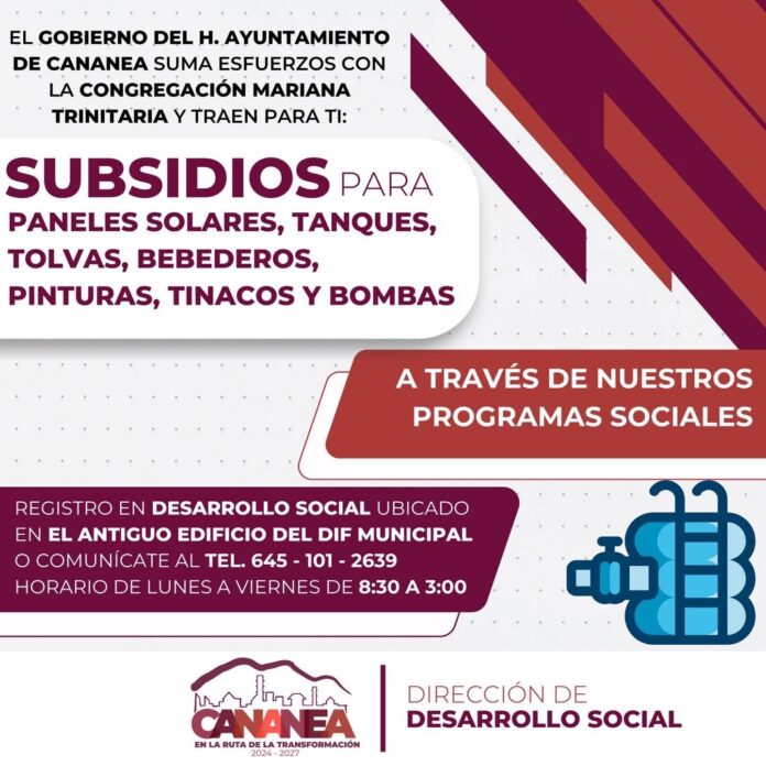 Marzo 2025.- El Gobierno Municipal de Cananea, a través de la Dirección de Desarrollo Social, informa a la comunidad sobre los subsidios disponibles en colaboración con la Congregación Mariana Trinitaria.