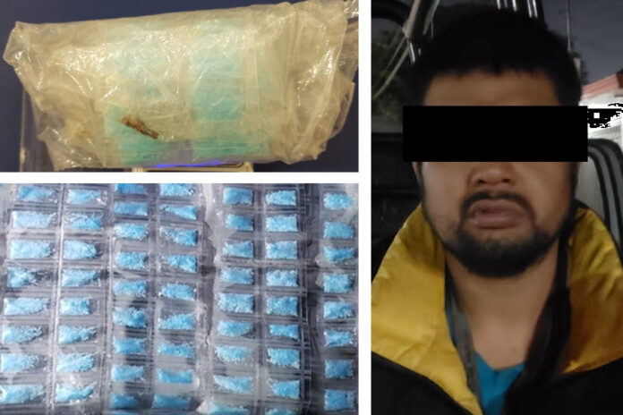 Al detenido se le incautaron 108 envoltorios de sustancia granulada de color azul que presentaban características físicas y similares al narcótico; ante este hallazgo, se informó al sujeto sobre los derechos de las personas detenidas y quedó a disposición del Ministerio Público, para los trámites legales correspondientes.