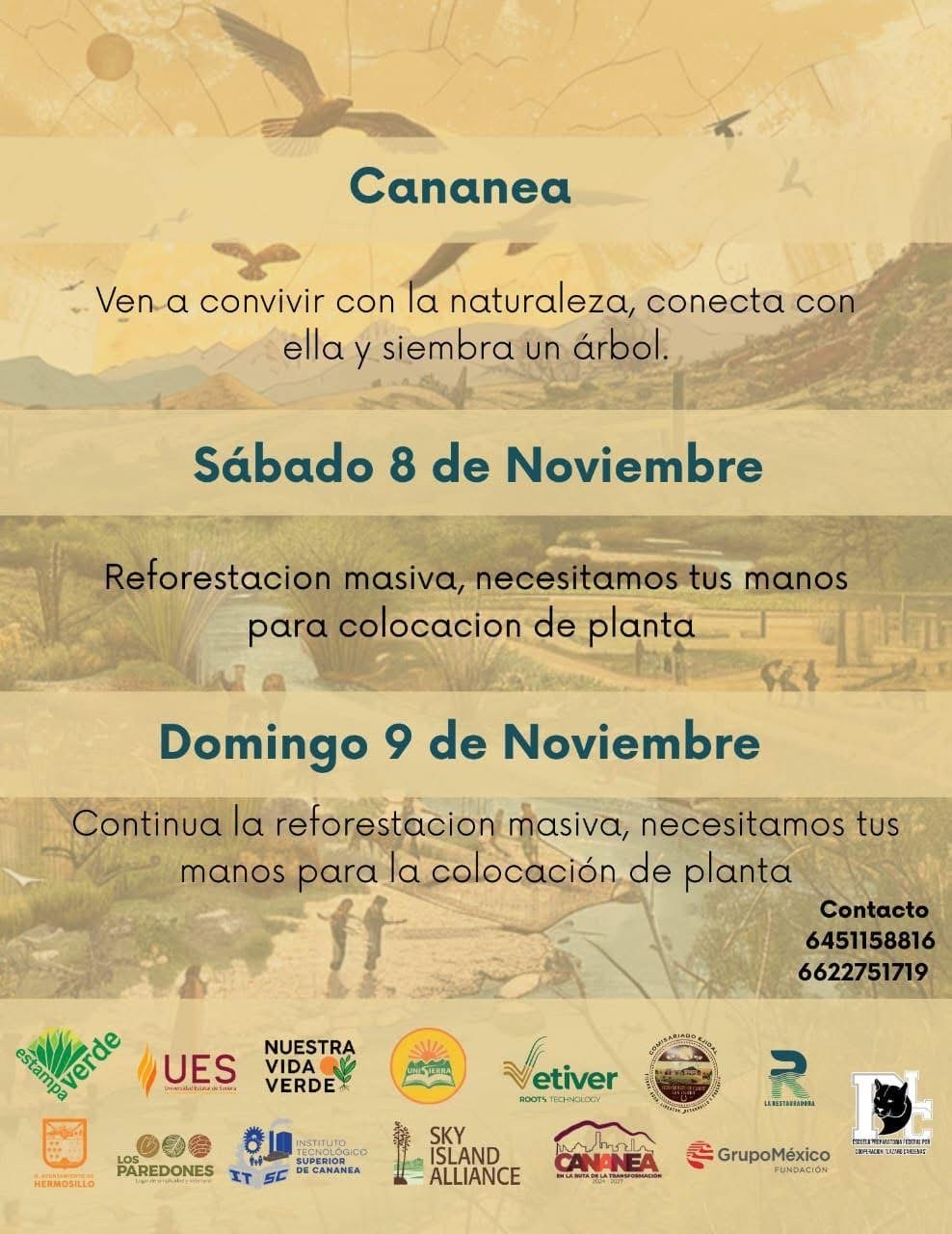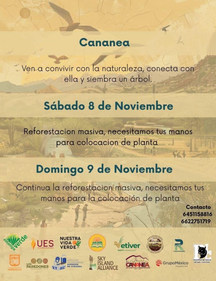Participa en la reforestación masiva del sábado 8 y domingo 9 de noviembre en el Cañón de Evans, donde daremos inicio al primer bosque Miyawaki de Sonora. 🌱