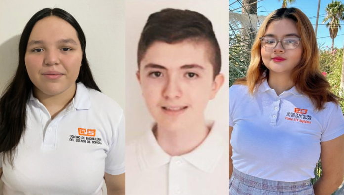 Frida Lucía Ruíz Ochoa, alumna del plantel Eusebio Francisco Kino de Magdalena; Karla Guadalupe Armenta Noriega de Navojoa y Marco Antonio Tadeo Munro Flores, del plantel Prof. Jesús Guillermo Careaga Cruz (Reforma) superaron todas las pruebas de la Olimpiada Estatal y representarán a Sonora en la etapa nacional, informó Rodrigo Arturo Rosas Burgos.