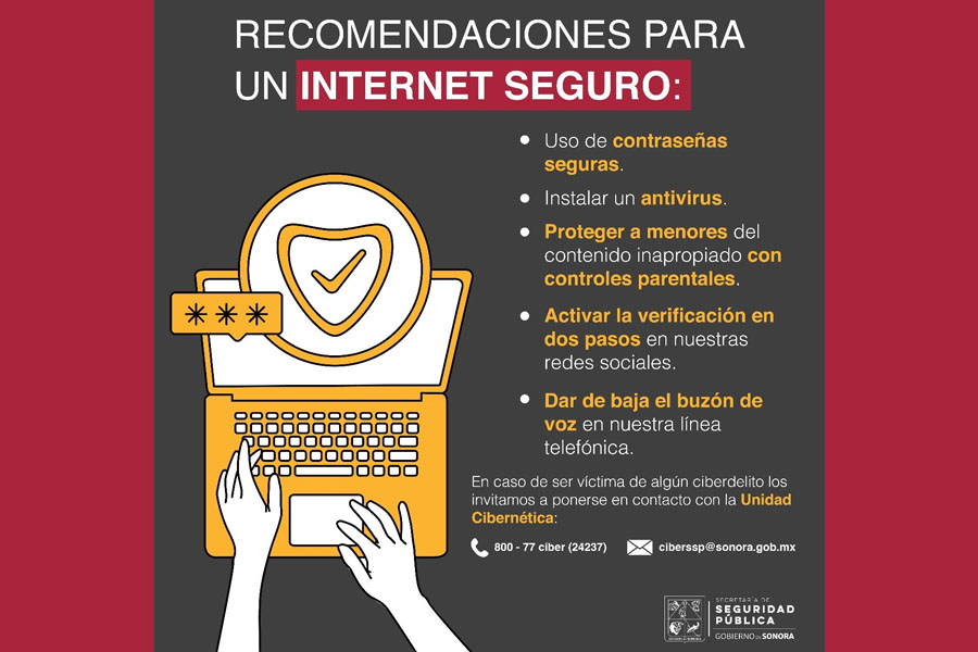 En caso de ser víctima de algún ciberdelito, las y los ciudadanos pueden ponerse en contacto con la Unidad Cibernética al teléfono 800-77 ciber (24237) o al correo ciberssp@sonora.gob.mx y mantenerse informado.