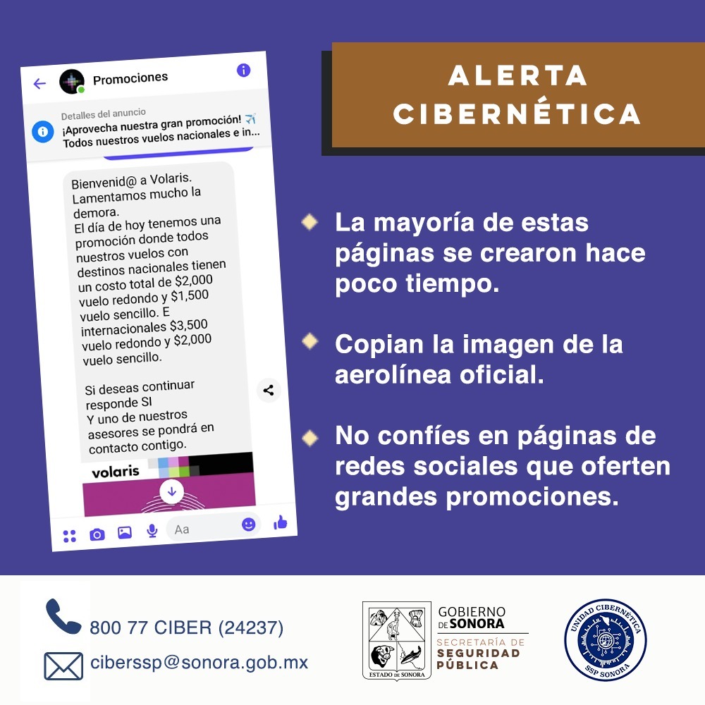 Hermosillo, Sonora; 20 de mayo de 2022. Personal de la Unidad Cibernética de la Secretaría de Seguridad Pública (SSP) de Sonora, emitió alerta por página en Facebook “Promociones”, que ofrece boletos a un precio más bajo de lo normal y, al momento de hacer el depósito, bloquea al comprador.