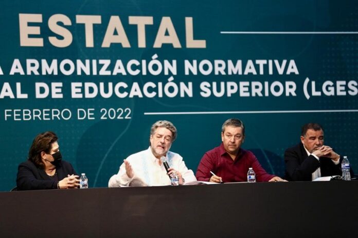 Hermosillo, Sonora; 28 de febrero de 2022.- Becas, abandono escolar, políticas y programas educativos, presupuestos institucionales y oferta educativa acorde a las características regionales de desarrollo económico y laboral fueron algunos de los temas abordados en el foro estatal de análisis para la armonización normativa derivada de la Ley General de Educación Superior.