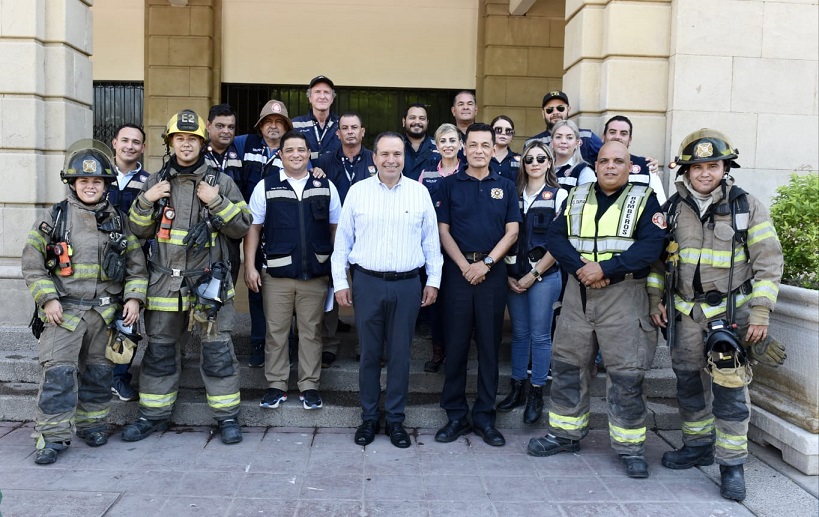 Astiazarán Gutiérrez agradeció tanto a Protección Civil del Estado como del Ayuntamiento y a todos los cuerpos de rescate, de Bomberos y de la Policía de Hermosillo, por ser parte del esfuerzo en la evacuación del Palacio Municipal y de otros edificios de gobierno, como parte del Simulacro Nacional 2023, en el aniversario de los terremotos registrados en 1985 y 2017.