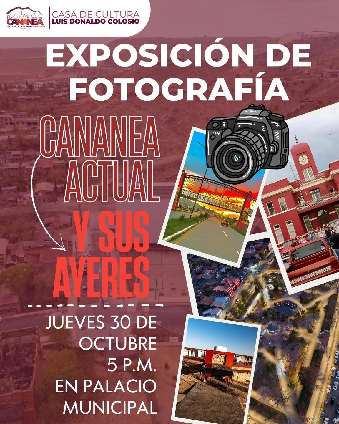 Octubre 2025.- La Casa de Cultura Luis Donaldo Colosio invita a toda la comunidad a disfrutar de la exposición fotográfica “Cananea Actual y sus Ayeres”, una muestra que nos permitirá recorrer, a través de imágenes, la historia, transformación y esencia de nuestra ciudad minera. 🧡📷