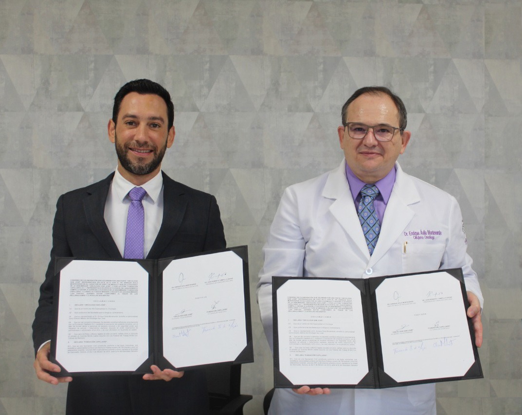 Con el objetivo de apoyar a pacientes qué debido a su tratamiento contra el cáncer han perdido el cabello, El Dr. Enrique Ávila Monteverde, Director Médico de Oncología San José y el Dr. Juan Roberto Campillo Gaona, Presidente de la Fundación Capillaris, firmaron el convenio de colaboración para recibir donación de cabello de parte de la sociedad civil para realizar pelucas oncológicas