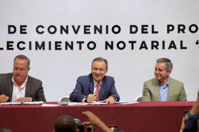 Hermosillo, Sonora; 26 de febrero de 2025.- Con el propósito de apoyar la economía de las familias sonorenses, el gobernador Alfonso Durazo Montaño lanzó el Programa de Fortalecimiento Notarial (FONAL), en colaboración con los notarios públicos de la entidad para ofrecer descuentos en distintos trámites legales.