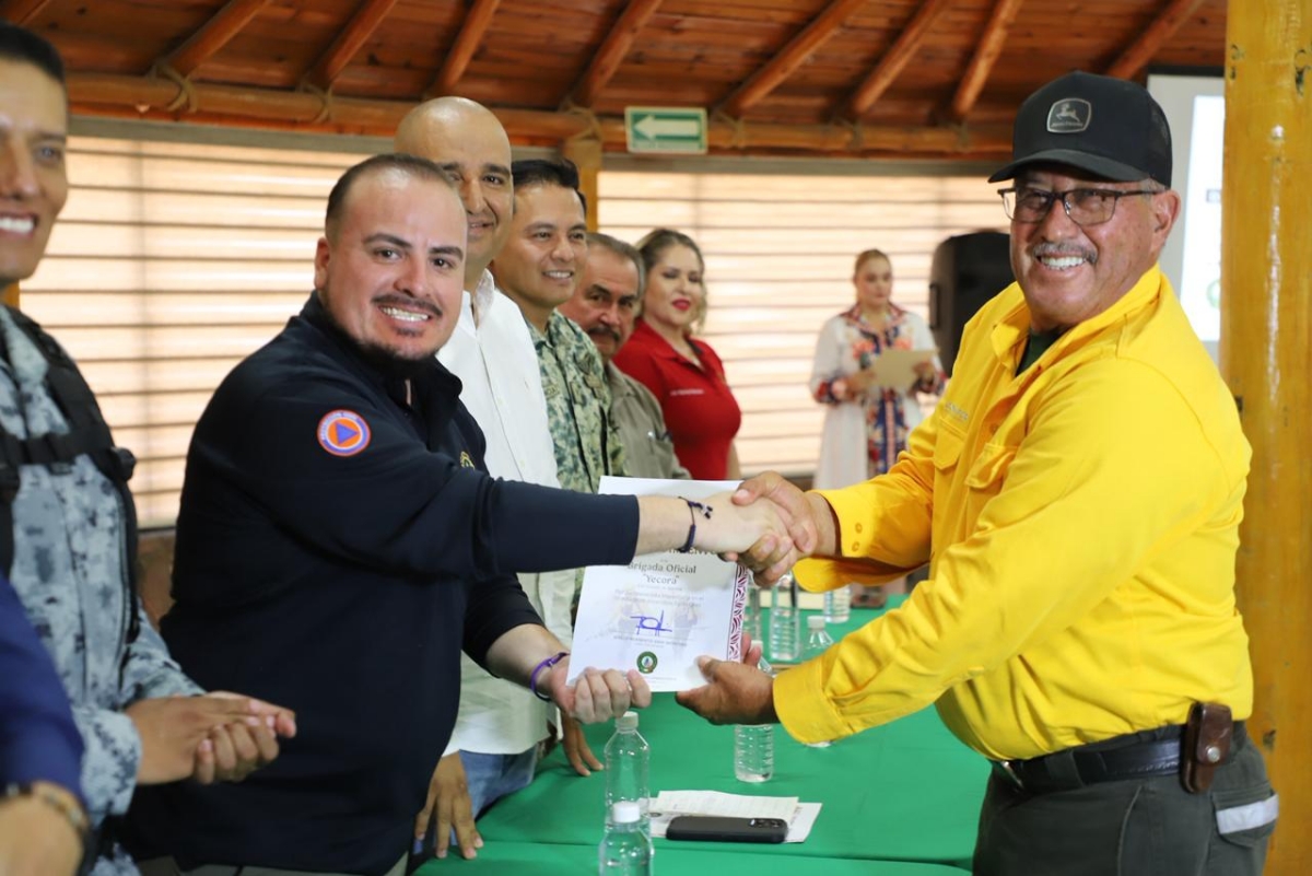 Durante la ceremonia se reconoció el trabajo coordinado de los tres niveles de gobierno para hacer frente a los incendios forestales, con énfasis en la labor de las y los combatientes, quienes año con año arriesgan su vida para proteger la salud ambiental y a las comunidades.