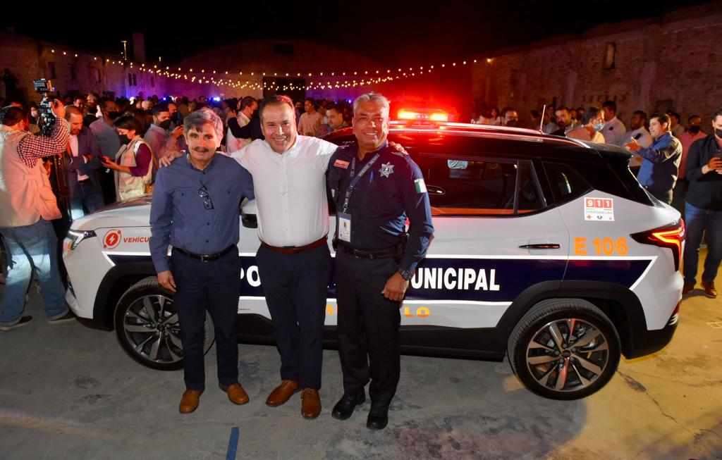 La presentación de las nuevas patrullas contó con la presencia de Álvaro Bracamonte Sierra, secretario de Gobierno del Estado; Manuel Emilio Hoyos Díaz, comisario de la Jefatura de Policía Preventiva y Tránsito Municipal.