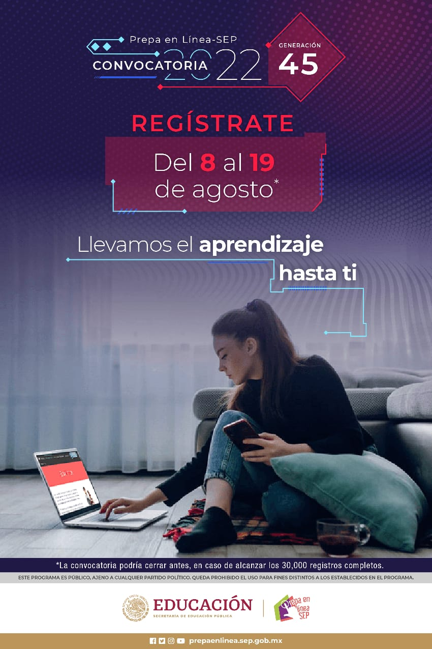 La Secretaría de Educación Pública (SEP) a través de la Secretaría de Educación y Cultura en la entidad (SEC), invita a las y los sonorenses a participar en la convocatoria de registro de la generación 45 del Servicio Nacional de Bachillerato en Línea, “Prepa en Línea-SEP”.