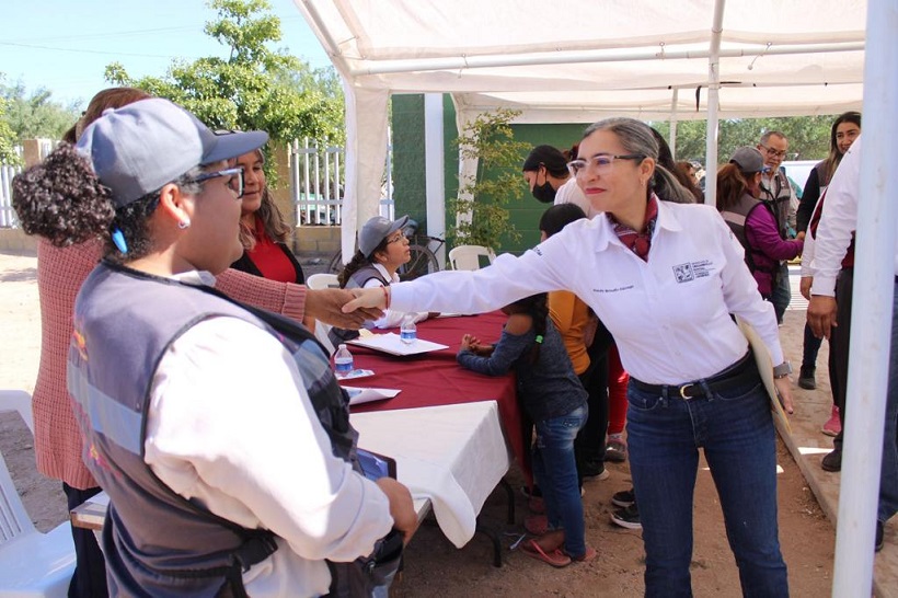 Wendy Briceño Zuloaga, titular de Sedesson, inició la jornada de trabajo en la localidad de Sirebampo, municipio de Huatabampo, donde dialogó con más de 20 mujeres de la comunidad.