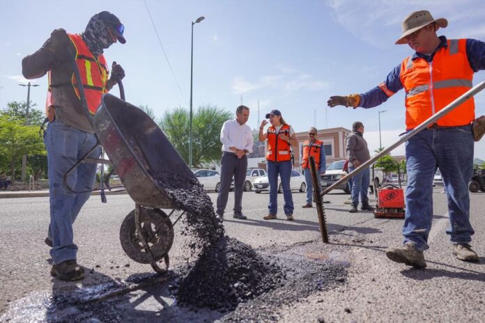 “Sabemos que esta combinación de lluvias y falta de mantenimiento de años anteriores ocasiona baches, tierra y basura acumulada, por eso hemos duplicado el programa urgente de bacheo y para acelerar el paso a la rehabilitación de nuestras calles vamos a tapar 5 mil cada semana, con el trabajo de 70 empleados y 15 cuadrillas”, anunció Antonio Astiazarán.
