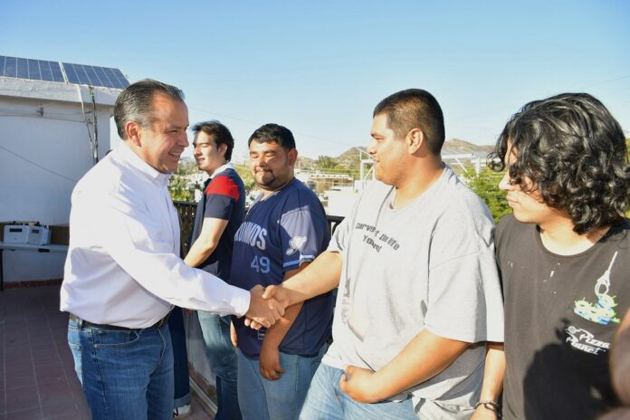 Hermosillo, Sonora; 8 de abril, 2025.- El Presidente Municipal Antonio Astiazarán Gutiérrez respondió a la solicitud de apoyo de las y los residentes de la Casa del Estudiante Urense con la reparación del sistema fotovoltaico por el que esta institución se convirtió en pionera en el uso de energías limpias en Hermosillo.