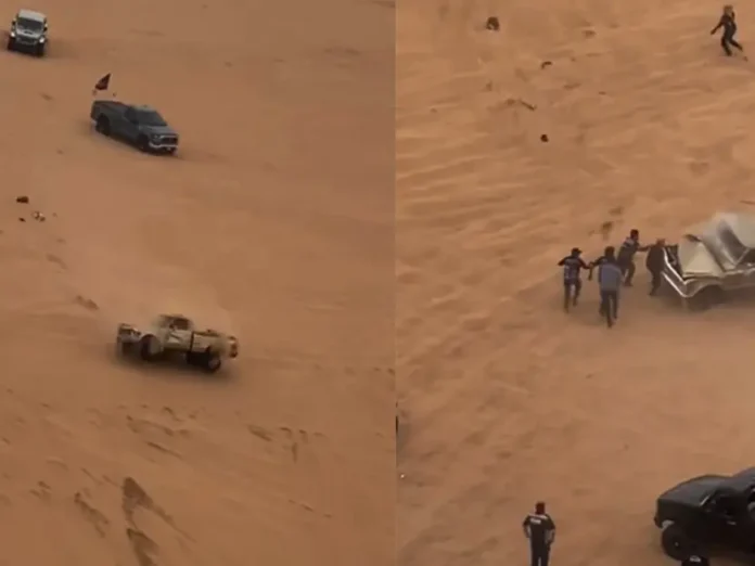Un video captó el precisó momento en que una camioneta volcó el pasado domingo desde la cima de las Dunas del Desierto de Altar. Se trató de la unidad que conducía el médico de San Luis Río Colorado, Fernando Hidalgo Corrales y su acompañante Antonio Valadez.