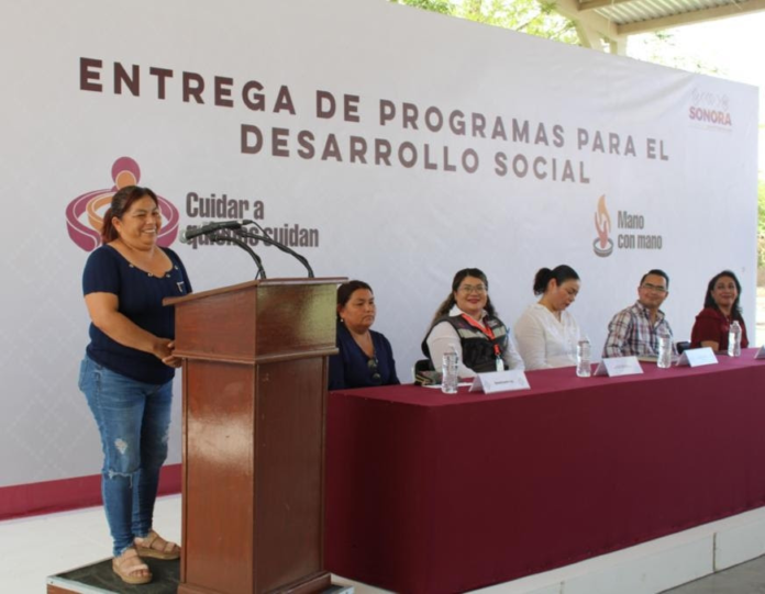 | Caborca, Sonora; a 8 de junio de 2022.- La Secretaría de Desarrollo Social (Sedesson) hizo la entrega de 101 tarjetas bancarias para personas beneficiarias del programa “Mano con Mano”, dirigido al combate de la pobreza extrema, y 41 tarjetas de “Cuidar a quienes Cuidan”, enfocado en reconocer el trabajo no remunerado que realizan personas que cuidan algún familiar neurodivergente, enfermo de cáncer o alguna discapacidad y para este año tienen proyectado entregar hasta 310 tarjetas en Caborca. Patricia Duarte, directora general de Programas Sociales, en representación de Wendy Briceño Zuloaga, secretaria de Desarrollo Social, recalcó que “Cuidar a quienes Cuidan” es una iniciativa que no tiene precedente en el país, ya que procura garantizar el derecho al ingreso de personas que están a cargo del cuidado de sus familiares, en su gran mayoría mujeres. Así mismo, resaltó a los presentes que la entrega del recurso será a través de estas tarjetas, lo que garantizará la transparencia del programa, para que verdaderamente llegue a quien más lo necesita. Por su parte Irene Martínez Cruz, beneficiaria del programa “Mano con Mano”, agradeció al gobernador Alfonso Durazo por hacer llegar estos apoyos al municipio de Caborca y a sus comunidades; además, reconoció la ardua labor de los Caminantes por la Transformación, los brigadistas de la dependencia. Mientras que Audelia Zavala, beneficiaria del programa, reconoció el apoyo, ya que ella, al igual que muchas madres que tienen hijos con alguna discapacidad, le resulta complicado salir a trabajar por estar dedicada a su cuidado. Por otro lado, Patricia Duarte recordó que Marcia Yeanet Estrada Valenzuela, coordinadora de Vinculación Regional de Sedesson, es el puente para cualquier trámite, apoyo o inquietud que los caborquences pudieran tener sobre el programa. También estuvieron presentes en el evento Saira Jazmín Castañeda Cisneros, coordinadora de Caminantes por la Transformación del Alto Golfo y Gran Desierto; y Carlos Alberto Quijada Marcial, director de Desarrollo Social Municipal. |