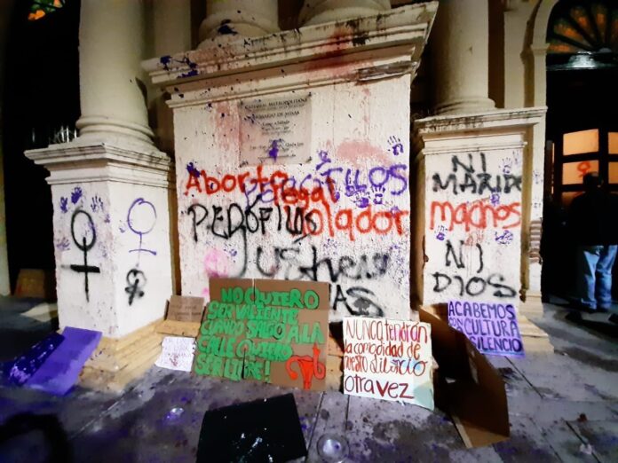 Así dejaron la Catedral de Hermosillo un grupo de feministas violentas