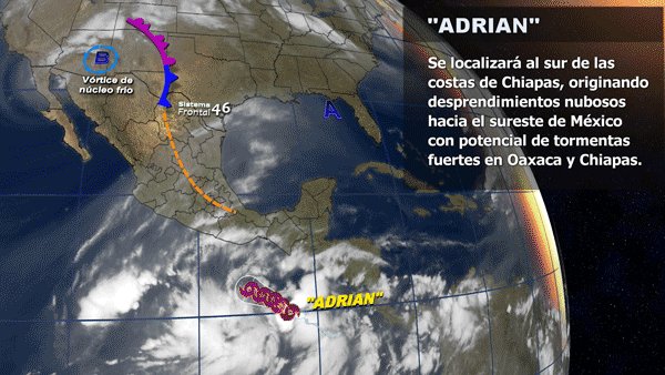 La depresión tropical Adrián se convirtió en la primera tormenta tropical de la temporada frente a las costas del océano Pacífico norte, a unos 810 kilómetros del puerto de Salina Cruz, Oaxaca, en el sur de México, dijo el martes el Servicio Meteorológico Nacional (SMN).