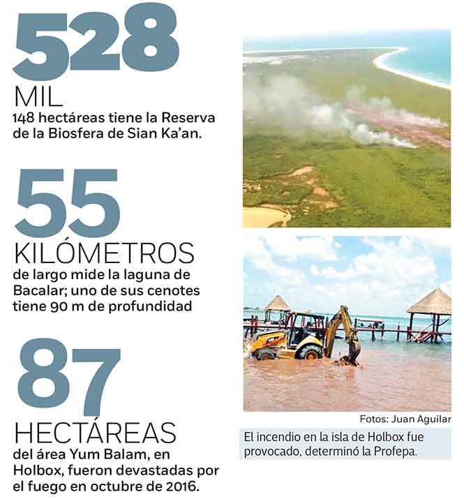 A mediados de septiembre, 87 hectáreas del Área de Protección de Flora y Fauna denominado Yum Balam, en la isla de Holbox, Quintana Roo, fueron devastadas por un incendio en octubre pasado. La Procuraduría Federal de Protección al Ambiente (Profepa) confirmó que el fuego fue generado por la mano del hombre, por lo que se decretó en veda por 20 años.