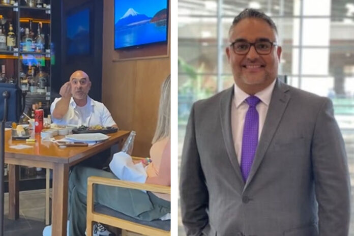 En su cuenta de Twitter, Serrano compartió un vídeo donde capta a Suárez Gomís que, sentado en una mesa aledaña a la del periodista, en un principio, trata de evadirlo. En la publicación puede observarse cuando un hombre se acerca a Serrano y este le explica que el actor rompió sus lentes y, luego de la agresión, continuaba atacándolo.