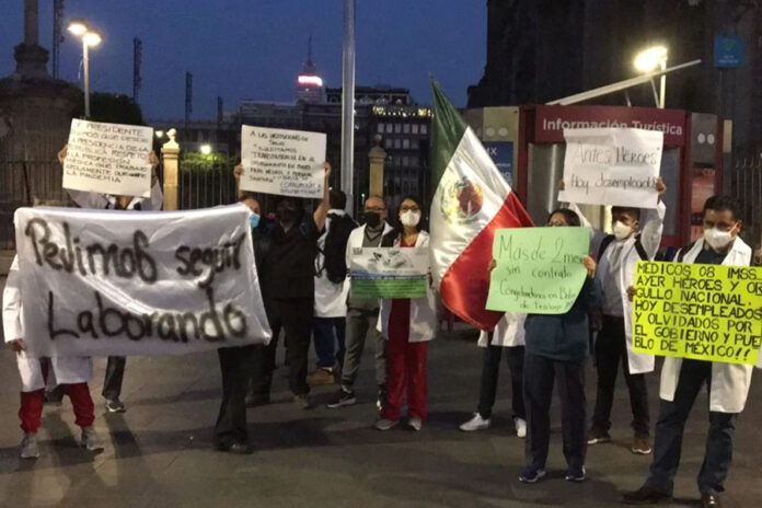 Junto con un grupo de compañeros médicos, de diversas delegaciones del Instituto, los médicos reclamaron al presidente Andrés Manuel López Obrador que durante la pandemia los trataron como héroes y ahora les dicen que no hay presupuesto para contratarlos.