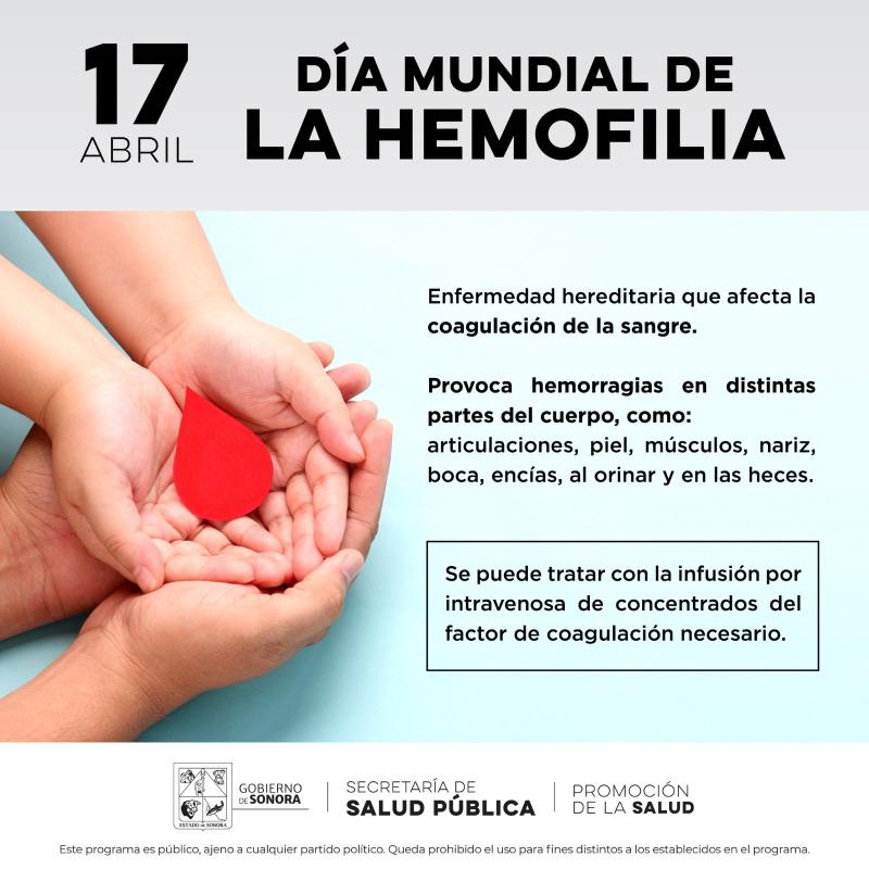 La dependencia de salud, especificó que la hemofilia es un trastorno sanguíneo hereditario que afecta la capacidad de coagulación de la sangre y se caracteriza por una deficiencia o ausencia de ciertas proteínas de coagulación, lo que puede llevar a sangrado prolongado y dificultad para detener las hemorragias, incluso después de lesiones menores.