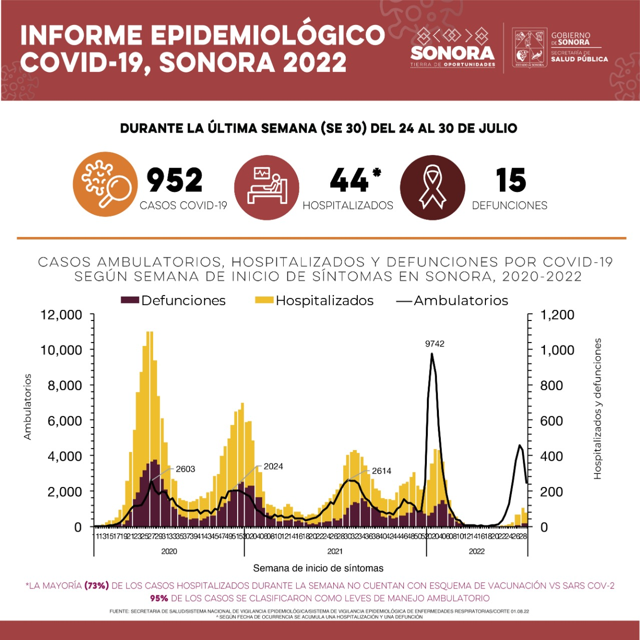 La Secretaría de Salud (SSA) confirmó 952 casos de Covid-19 y 15 defunciones a causa de la enfermedad durante la semana epidemiológica 30, la cual abarca del 24 al 30 de julio.