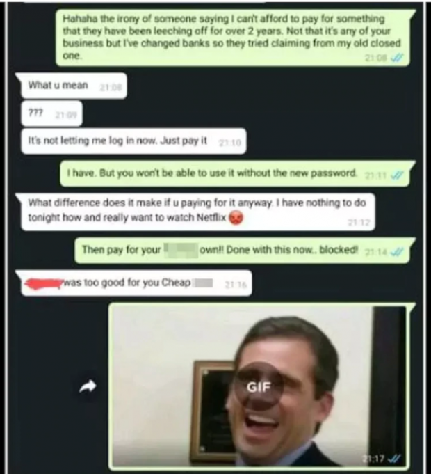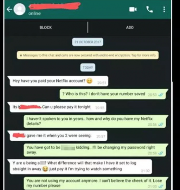 cuenta de Netflix a su nueva pareja con el fin de que disfrutara del servicio