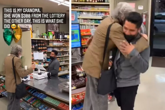 <div>Muy pocas personas son las afortunadas en decir que ganaron la lotería, algo que sin duda muchos consideran un golpe de suerte, por lo que consideran quedarse con el dinero y pagar sus deudas, sin embargo, una abuelita conmovió a las redes sociales al demostrar su buena acción después de haberse ganado la lotería.</div><div><br></div><div>Esta historia se hizo viral después de la nieta de Marion Forrest, una mujer de 86 años se ganara la lotería tras comprar un boleto de lotería en una tienda de conveniencia en Estados Unidos sin esperar que resultaría una de las ganadoras.</div><div><br></div><div>En el video se observa que la abuelita llega a la tienda con uno globos, se acerca a la caja en donde se encuentra el hombre al que le compró el boleto de lotería. Después le enseña que ganó el premio y le da la noticia que ha decidido repartir el dinero con él.</div><div><br></div><div>De acuerdo con Good News Movement, la historia comenzó cuando Walter, nombre del cajero, animó a Marion a comprar un boleto de lotería. Ante la insistencia del hombre, la abuelita compró un boleto y le prometió a Walter que si ganaba cuidaría de él y dividiría el premio ya que se podía ganar hasta 500 mil dólares.</div><div><br></div><div>Una semana después, la abuelita regresó a la tienda para darle la buena noticia a Walter que había ganado una parte del premio, equivalente a 300 dólares.</div><div><br></div><div>En el video que se ha vuelto viral se observa que Marion le da un sobre a Walter cuando le da la noticia que ganó la lotería. El sobre contiene 150 dólares, la mitad de lo que ganó la abuelita. El cajero sin dudarlo le agradece a Marion y ambos se abrazan.</div><div><br></div><div>Milenio</div>